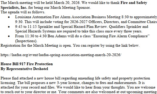 Serving the Louisiana Fire Alarm and Life Safety Industry since 1993.